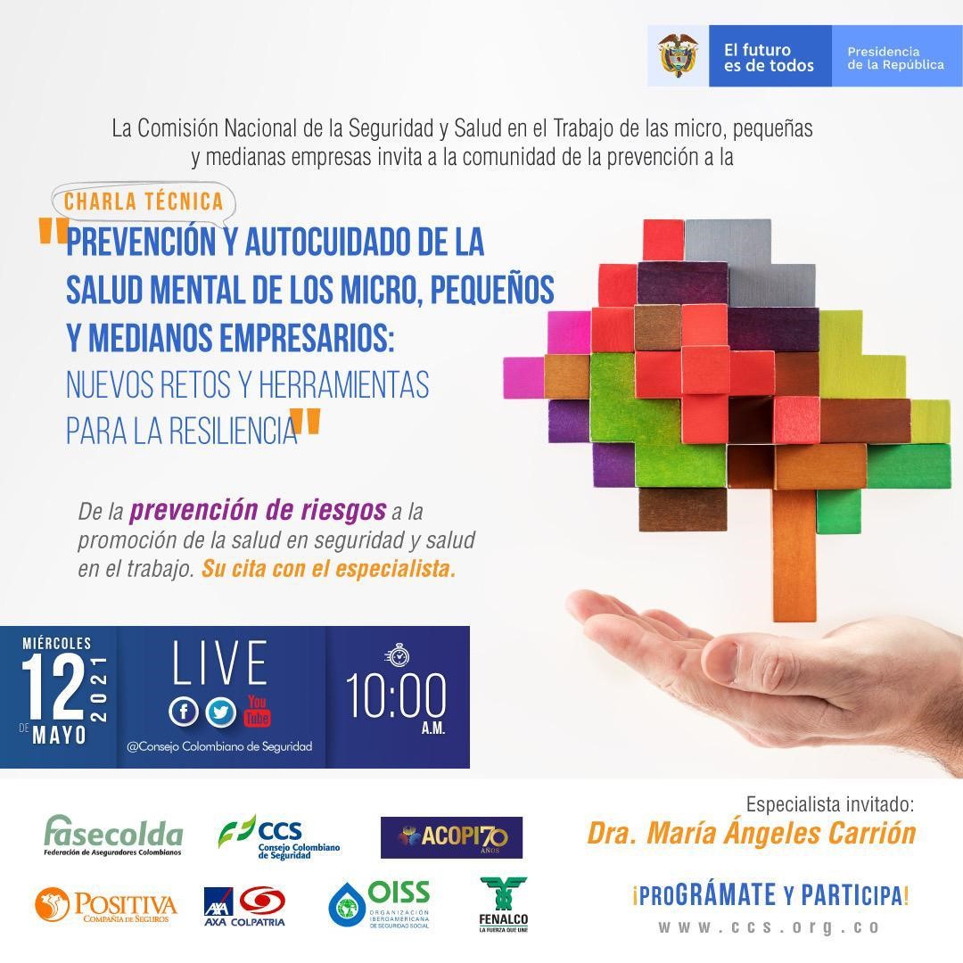 La Comisión Nacional de la Seguridad y Salud en el Trabajo de la MIPYME invita a toda la comunidad de la prevención a unirse a la charla técnica desarrollada el 12 de mayo sobre “Prevención y autocuidado de la salud mental de los micro, pequeños y medianos empresarios: nuevos retos y herramientas para la resiliencia”…ver más